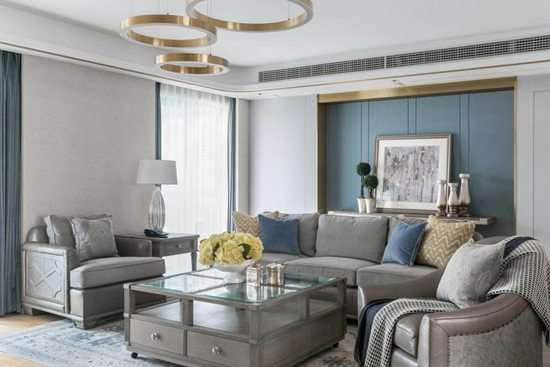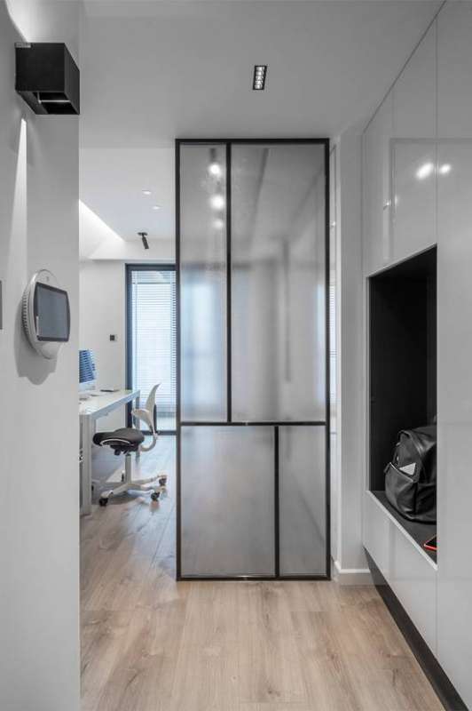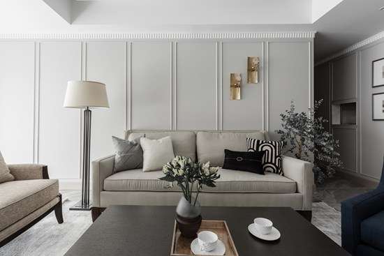 玄關(guān)護(hù)墻板直接延伸到客廳,讓居家整體協(xié)調(diào)性更好。經(jīng)典的黑白灰提升房間質(zhì)感,不會(huì)夸張突兀,恰到好處。
